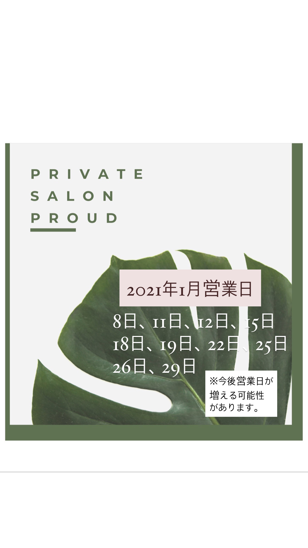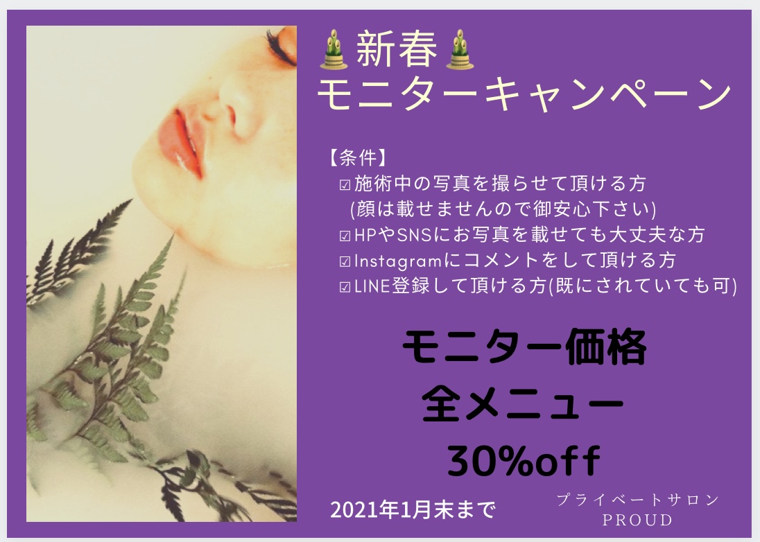 明けましておめでとうございます♡今年も、【プライベートサロン PROUD】をよろしくお願い致します♡そして、新春モニターキャンペーンを始めます!!条件がございますので、ご協力出来る方のみ対象となります。✼••┈┈┈┈••✼••┈┈┈┈••✼••┈┈┈┈••✼詳しくはブログか予約フォームへ↓↓予約フォームは24時間受付可能♡☑︎ブログhttp://proud0401.blog.shinobi.jp/☑︎予約フォームhttps://reserva.be/relaxationsalonproud※ご予約は3日前まで可能です。☑︎Instagram@proud0401https://www.instagram.com/proud0401/ご不明、ご質問などございましたら各サイト内のメールかxxx.proud0401.xxx@gmail.comまで。お電話は0286111009までご連絡お待ちしております♡✼••┈┈┈┈••✼••┈┈┈┈••✼••┈┈┈┈••✼