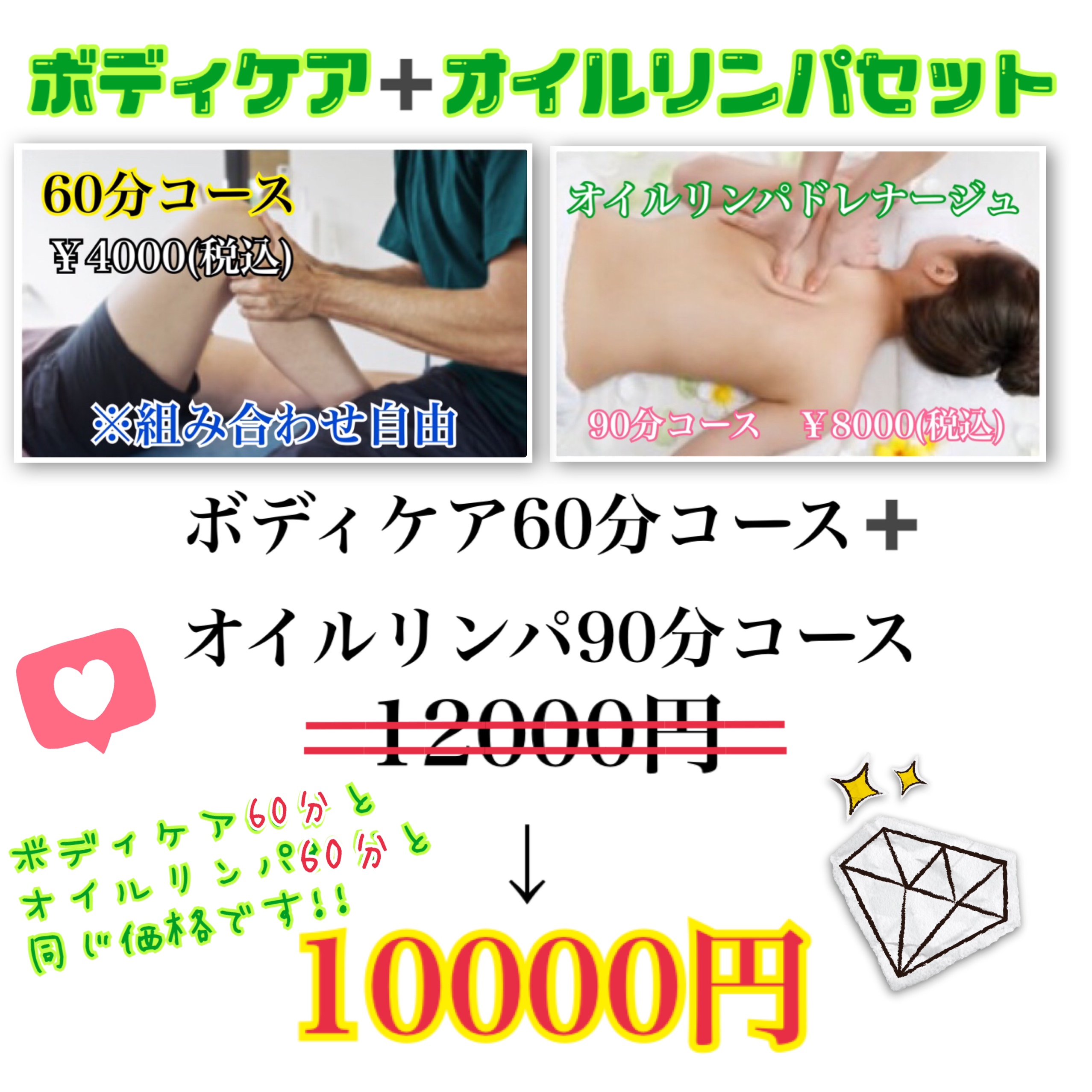 一気に秋になり、自律神経が乱れてる方が多いと思います。頭痛や、体がだるい、冷や汗がでる、体が冷えるなど・・・いつもとは、違う症状がでやすい時期です。そんな方のために【身体労りセットメニュー】を作ってみました!寒くなって、血行も悪くなり身体も温めていきましょう!足湯もありますので、お好きな香りのアロマを垂らして身体の芯までリラックスしてください♡折角、来店して頂いたのなら長居してもらいたい・・・数ヶ月に一回くらい自分にご褒美を・・・という方への特別セットにしてみました。✼••┈┈┈┈••✼••┈┈┈┈••✼••┈┈┈┈••✼詳しくはブログか予約フォームへ↓↓予約フォームは24時間受付可能♡☑︎ブログhttp://proud0401.blog.shinobi.jp/☑︎予約フォームhttps://reserva.be/relaxationsalonproud※ご予約は3日前まで可能です。☑︎Instagram@proud0401https://www.instagram.com/proud0401/ご不明、ご質問などございましたら各サイト内のメールかxxx.proud0401.xxx@gmail.comまで。お電話は0286111009までご連絡お待ちしております♡✼••┈┈┈┈••✼••┈┈┈┈••✼••┈┈┈┈••✼