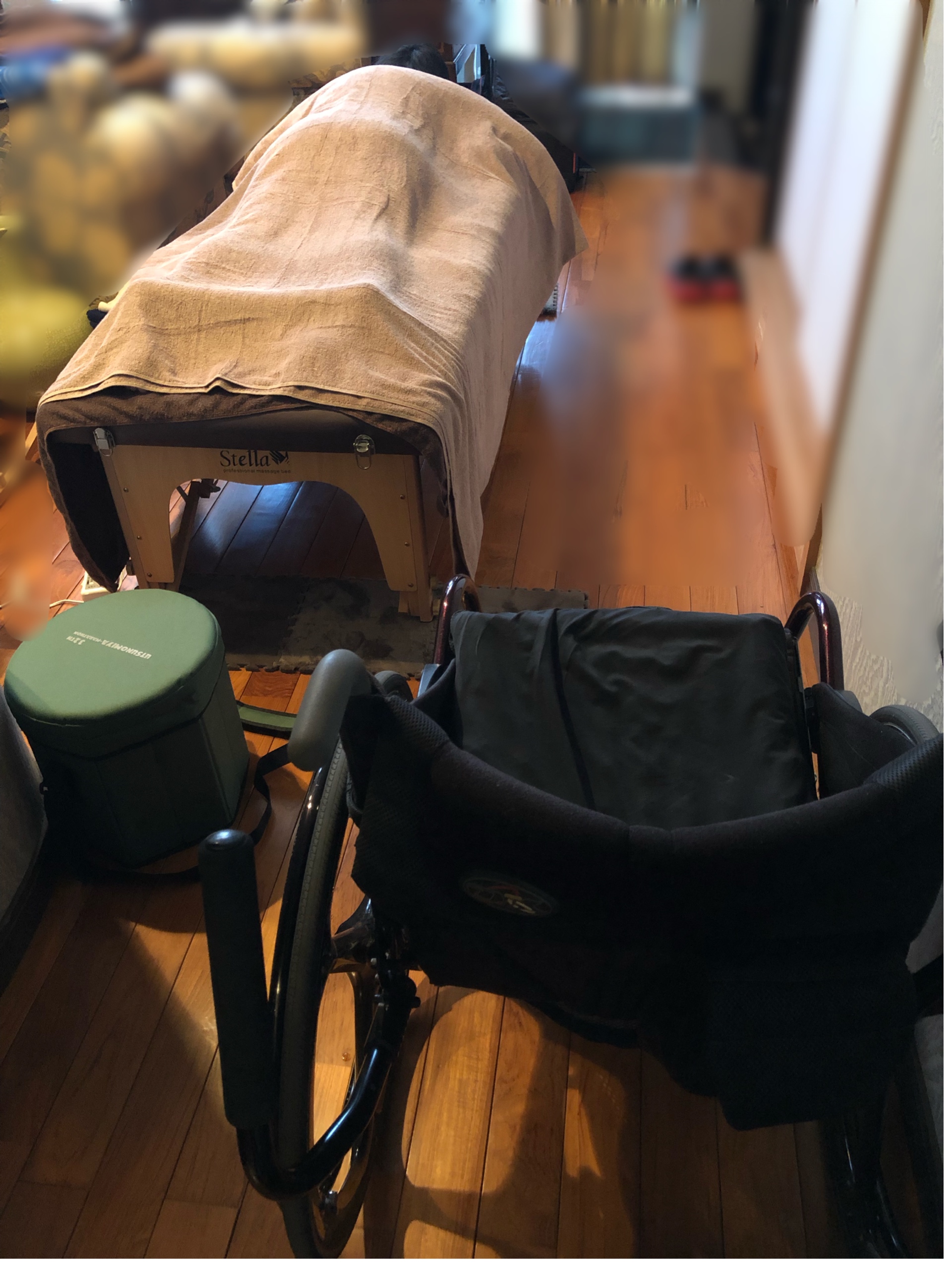 先日、お友達に施術を依頼されて車いすのお友達を施術しました。下半身不随のため、下半身は麻痺しているのですが血流をよくするためのマッサージや刺激を与えてみたいとの事でボディケア+フットリフレ90分コースを施術しました。ただし、あくまでも自己責任となりますので施術後に身体の状態が悪化しても責任は負えませんので充分、ご理解くださいね。最初にフットリフレ(足つぼマッサージ)から入りました。全く、力が入らないので私もちょっと手こずる部分もあったり・・・。たまに痙攣をしてしまうので、止まるまで待ったりして時間はかけてやりました。浮腫みはとれました〜!!上半身を常に使うので、肩や腕に筋肉もつきますが疲労感もたまにあるということで上半身は長めに施術しました。腕は、凝ってましたね〜丁寧にゆっくり施術しましたよ♡お友達も身体が楽になったようで私も嬉しかったです。定期的にマッサージをしてあげられたらいいな〜